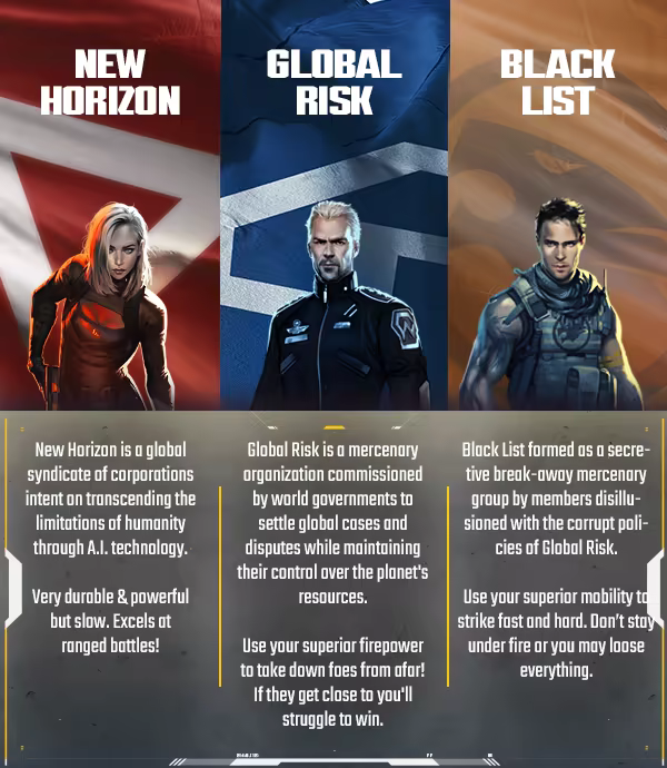 The world is in conflict. Black List and Global Risk are in a perpetual fight for the domination of their ideologies; but all is shaken up with the arrival of a new faction on the battlefield.